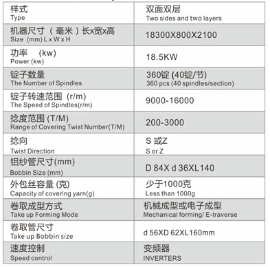 Double wrapping machine is used to produce double wrapping of gold and silver thread or double wrapping of polyurethane fiber. The machine is an improved machine, and the number of spindles increases, which increases the production capacity by 25%.